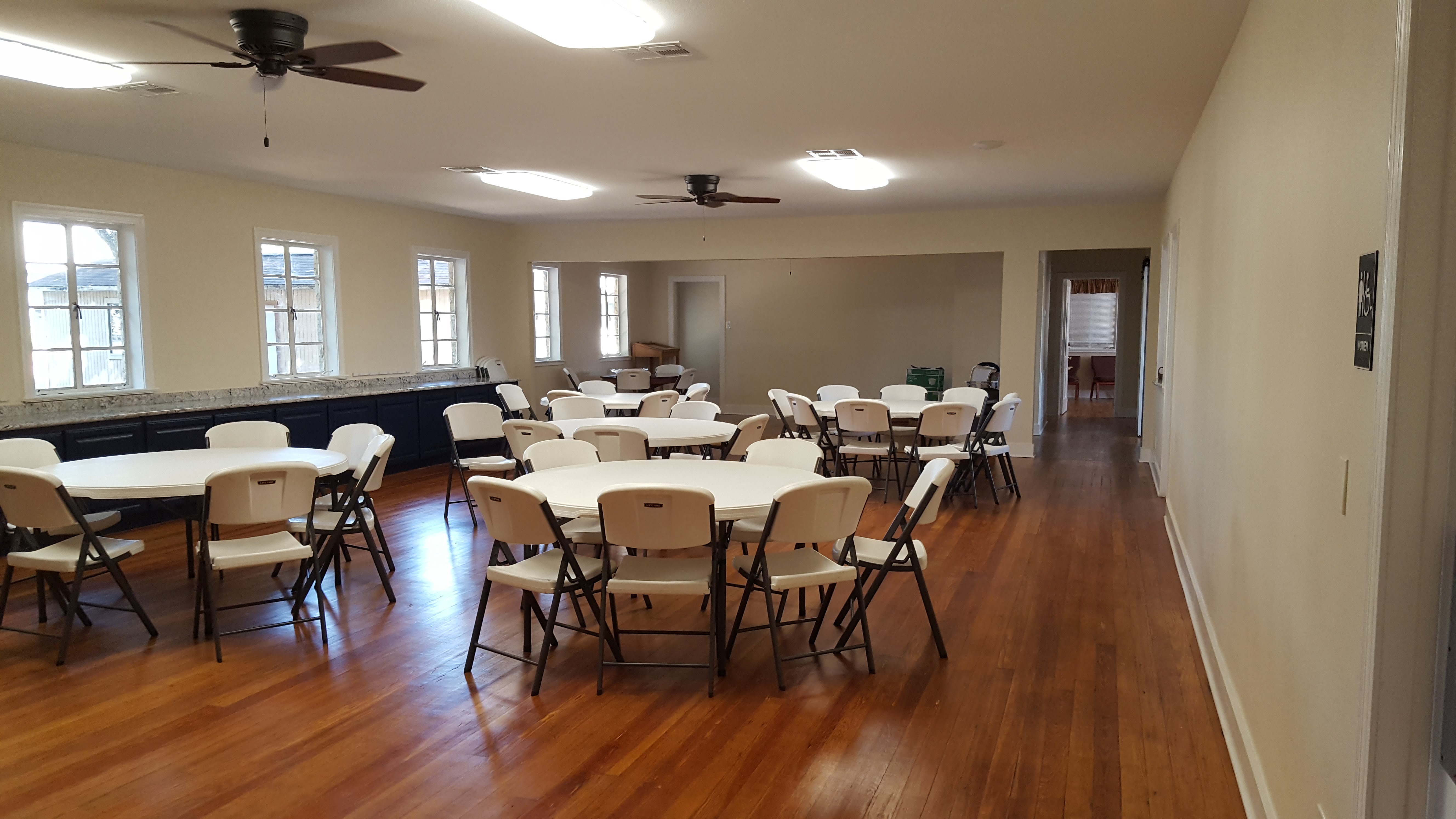 The Church on Elm Street is the original church and is very traditional and quaint and is a lovely space for your wedding. The church seats about 110 people and is adjacent to our newly renovated Fellowship Hall. The Fellowship Hall has a fully appointed kitchen and can be reserved for your rehearsal dinner and/or reception. The hall can seat approximately 60 guests comfortably for a sit down meal or more if you decide to have a simple punch/cake reception. Should you choose to reserve the Church for your wedding, your reservation includes use of the bridal suite and classrooms for your wedding party to prepare and wait for the ceremony to begin.